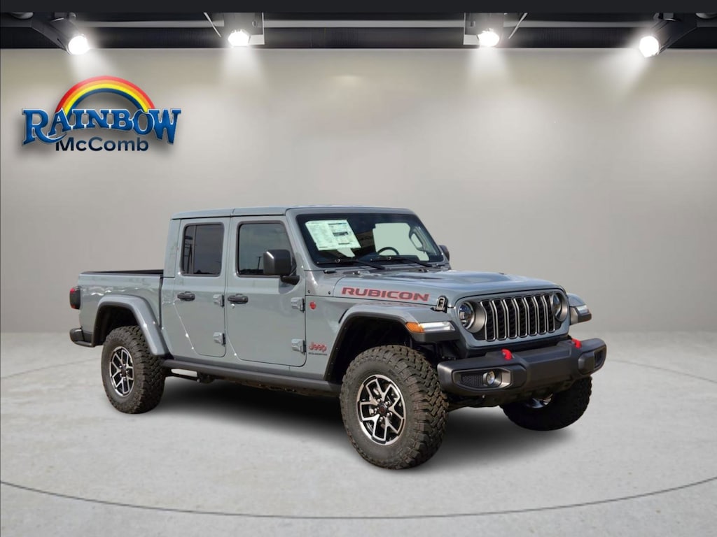 At Rainbow CDJR in McComb, Mississippi, exceptional customer service meets unbeatable financing optionsâ"whether your credit is spotless or needs a little TLC, weâre committed to finding the right vehicle and payment option that fits your needs! You will enjoy our large selection of New Vehicles so don't waste any time and grab an awesome deal on this 2025 Jeep Gladiator Rubicon while we have it. Its rock solid 8-Speed Automatic and its strong 3.6L V6 24V VVT engine have lots of personality for a bargain price. It also has the following Convenience Group (Heated Front Seats, Heated Steering Wheel, Remote Start System, SiriusXM Radio Service, SiriusXM w/360L, and Universal Garage Door Opener), Quick Order Package 24R Rubicon, 12.3" Touchscreen Display, 4-Wheel Disc Brakes, 4.10 Rear Axle Ratio, 4G LTE Wi-Fi Hot Spot, 8 Speakers, 97 MPH Vehicle Max Speed Calibration, ABS brakes, Air Conditioning, Alexa Built-In, Alloy wheels, AM/FM radio: SiriusXM, Apple CarPlay, Apple CarPlay/Android Auto, Automatic temperature control, Body Color 3-Piece Hard Top, Body Color Rubicon Highline Flare, Brake assist, Cloth Low-Back Bucket Seats, Compass, Connectivity - US/Canada, Delay-off headlights, Driver door bin, Driver vanity mirror, Dual front impact airbags, Dual front side impact airbags, Electronic Stability Control, Emergency communication system: Jeep Connect, Freedom Panel Storage Bag, Front anti-roll bar, Front Bucket Seats, Front Center Armrest w/Storage, Front dual zone A/C, Front fog lights, Front reading lights, Fully automatic headlights, Google Android Auto, Heated door mirrors, Illuminated entry, Integrated roll-over protection, Low tire pressure warning, MOPAR All-Weather Slush Mats, MOPAR Spray In Bedliner, Occupant sensing airbag, Outside temperature display, Overhead airbag, Panic alarm, Passenger door bin, Passenger vanity mirror, Performance Suspension, Power door mirrors, Power steering, Power windows, Radio data system, Radio: Uconnect 5 w/12.3" Display, Rear anti-roll bar, Rear reading lights, Rear Sliding Window, Rear Window Defroster, Remote keyless entry, Security system, Speed control, Split folding rear seat, Steering wheel mounted audio controls, Tachometer, Telescoping steering wheel, Tilt steering wheel, Traction control, Trip computer, USB Host Flip, Variably intermittent wipers, Voltmeter, and Wheels: 17" x 7.5" Machined/Painted Black. Price includes: $5500 - 2025 National Bonus Cash . Exp. 11/03/2025