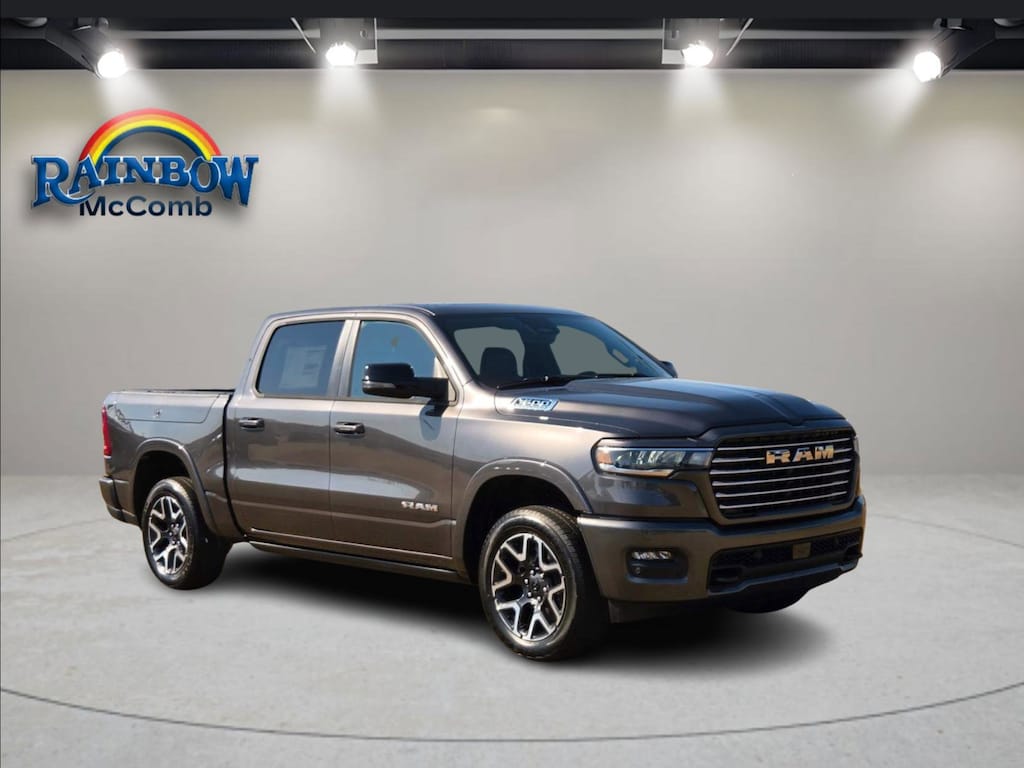 At Rainbow CDJR in McComb, Mississippi, exceptional customer service meets unbeatable financing optionsâ"whether your credit is spotless or needs a little TLC, weâre committed to finding the right vehicle and payment option that fits your needs! You will enjoy our large selection of New Vehicles so don't waste any time and grab a perfect deal on this 2026 Ram 1500 Laramie while we have it. Its dependable 8-Speed Automatic and its strong 3.0L I6 engine have lots of personality for a bargain price. It also has the following Laramie Level 1 Equipment Group (Rain Sensitive Windshield Wipers, Remote Tailgate Release, Secondary Active Grille Shutters, and Wireless Charging Pad), Laramie Southwest Edition (Accent Color Premium Power Mirrors, Auto Power-Folding Mirrors, Auto-Dimming Exterior Driver Mirror, Black Painted Exterior Mirrors Caps, Body Color Front Bumper, Body Color Rear Bumper w/Step Pads, Convex Wide-Angle Exterior Mirror Insert, Dome Dual LED Reading Lamp, Dual-Pane Panoramic Sunroof, Exterior Mirrors Courtesy Lamps, Exterior Mirrors w/Heating Element, Exterior Mirrors w/Memory, Exterior Mirrors w/Supplemental Signals, Grille Surround 3 Body Color Tex 4 Chrome, LED Dome/Reading Lamp, Power Deployable Running Boards, RAM Grille Badge - Chrome, Tow Hooks, and Trailer Brake Control), Quick Order Package 21H Laramie, 10 Speakers, 33 Gallon Fuel Tank, 4-Wheel Disc Brakes, 4G LTE Wi-Fi Hot Spot, ABS brakes, Active Noise Control System, Air Conditioning, Alloy wheels, AM/FM radio: SiriusXM with 360L, Anti-Spin Differential Rear Axle, Apple CarPlay, Apple CarPlay/Android Auto, Audio memory, Auto High-beam Headlights, Auto-dimming door mirrors, Auto-dimming Rear-View mirror, Automatic temperature control, Brake assist, Bumpers: chrome, Chrome Exterior Mirrors, Compass, Connected Travel & Traffic Services, Connectivity - US/Canada, Delay-off headlights, Disassociated Touchscreen Display, Driver door bin, Driver vanity mirror, Dual front impact airbags, Dual front side impact airbags, Electronic Stability Control, Exterior 115V AC Outlet, Front anti-roll bar, Front Bucket Seats, Front Center Armrest w/Storage, Front dual zone A/C, Front fog lights, Front reading lights, Front wheel independent suspension, Fully automatic headlights, Garage door transmitter, Global Telematics Box Module (TBM), Google Android Auto, GPS Antenna Input, GPS Navigation, HD Radio, Heated door mirrors, Heated front seats, Heated rear seats, Heated steering wheel, Illuminated entry, Integrated Center Stack Radio, Integrated Voice Command w/Bluetooth, Leather steering wheel, Leather Trimmed Bucket Seats, Low tire pressure warning, Memory seat, MOPAR Front & Rear Rubber Floor Mats, MOPAR Lockable Console Storage (DISC), Navigation System, Occupant sensing airbag, Off-Road Information Pages, Outside temperature display, Overhead airbag, Overhead console, Panic alarm, ParkView Rear Back-Up Camera, Passenger door bin, Passenger vanity mirror, Power door mirrors, Power driver seat, Power passenger seat, Power steering, Power windows, Radio data system, Radio: Uconnect 5 Nav w/12.0" Display, RamBox Cargo Management System, Rear anti-roll bar, Rear reading lights, Rear seat center armrest, Rear step bumper, Remote keyless entry, Security system, SiriusXM Radio Service, SiriusXM w/360L, Speed control, Split folding rear seat, Steering wheel mounted audio controls, Tachometer, Telescoping steering wheel, Tilt steering wheel, Traction control, Trip computer, Turn signal indicator mirrors, USB Host Flip, Variably intermittent wipers, Ventilated front seats, Voltmeter, and Wheels: 20" x 9" Premium Paint/Polish. Price includes: $3500 - 2026 National Retail Consumer Cash . Exp. 11/03/2025
